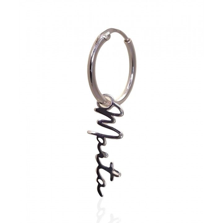 Aro ( medio par ) plata de ley 925 de 11mm de diámetro interior con motivo nombre personalizado ( nombre Marta 18mm largo )