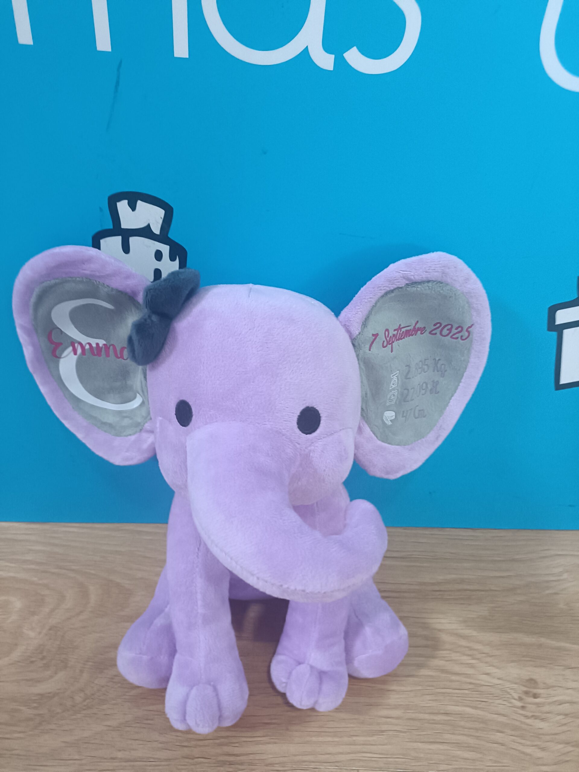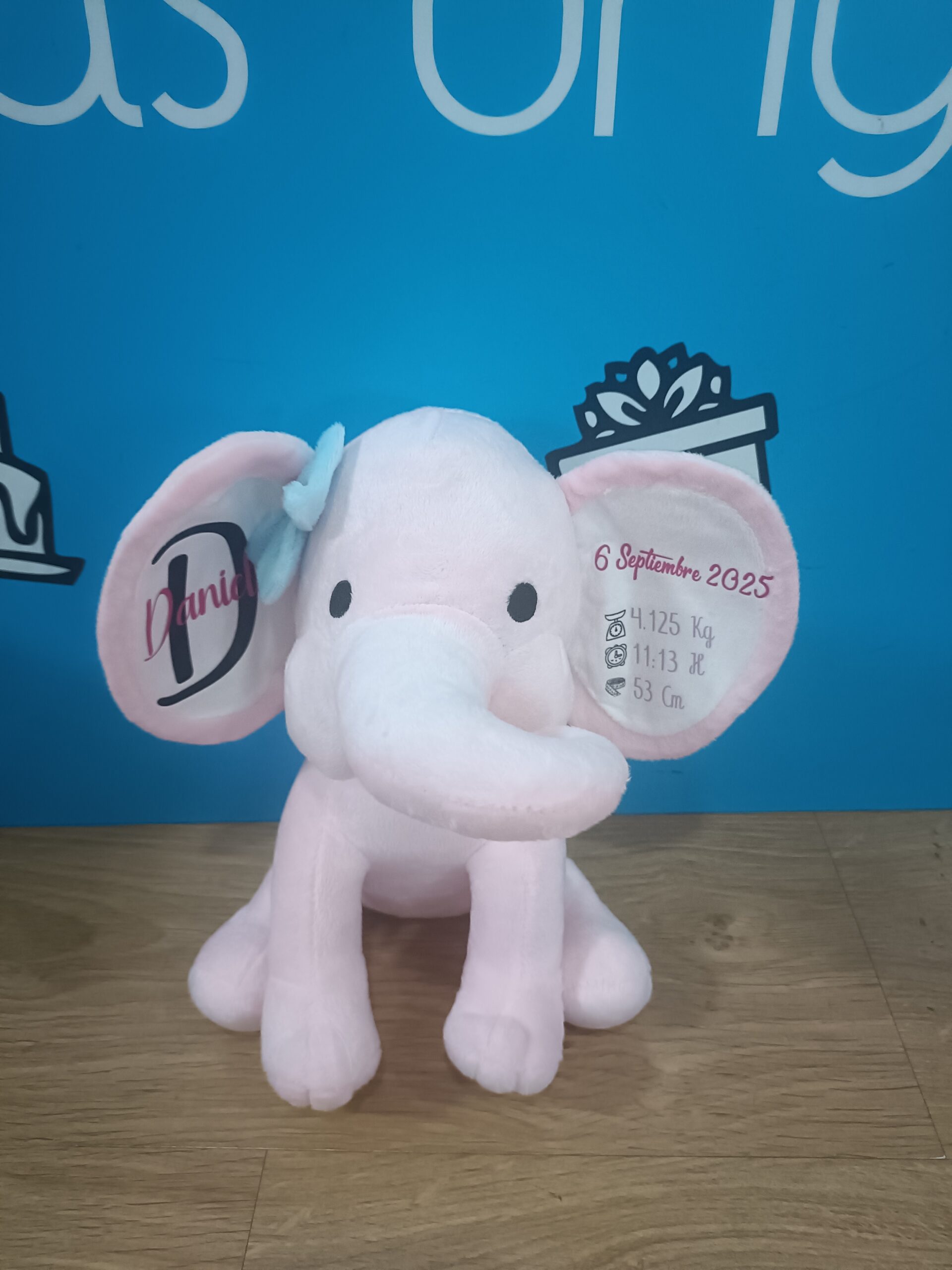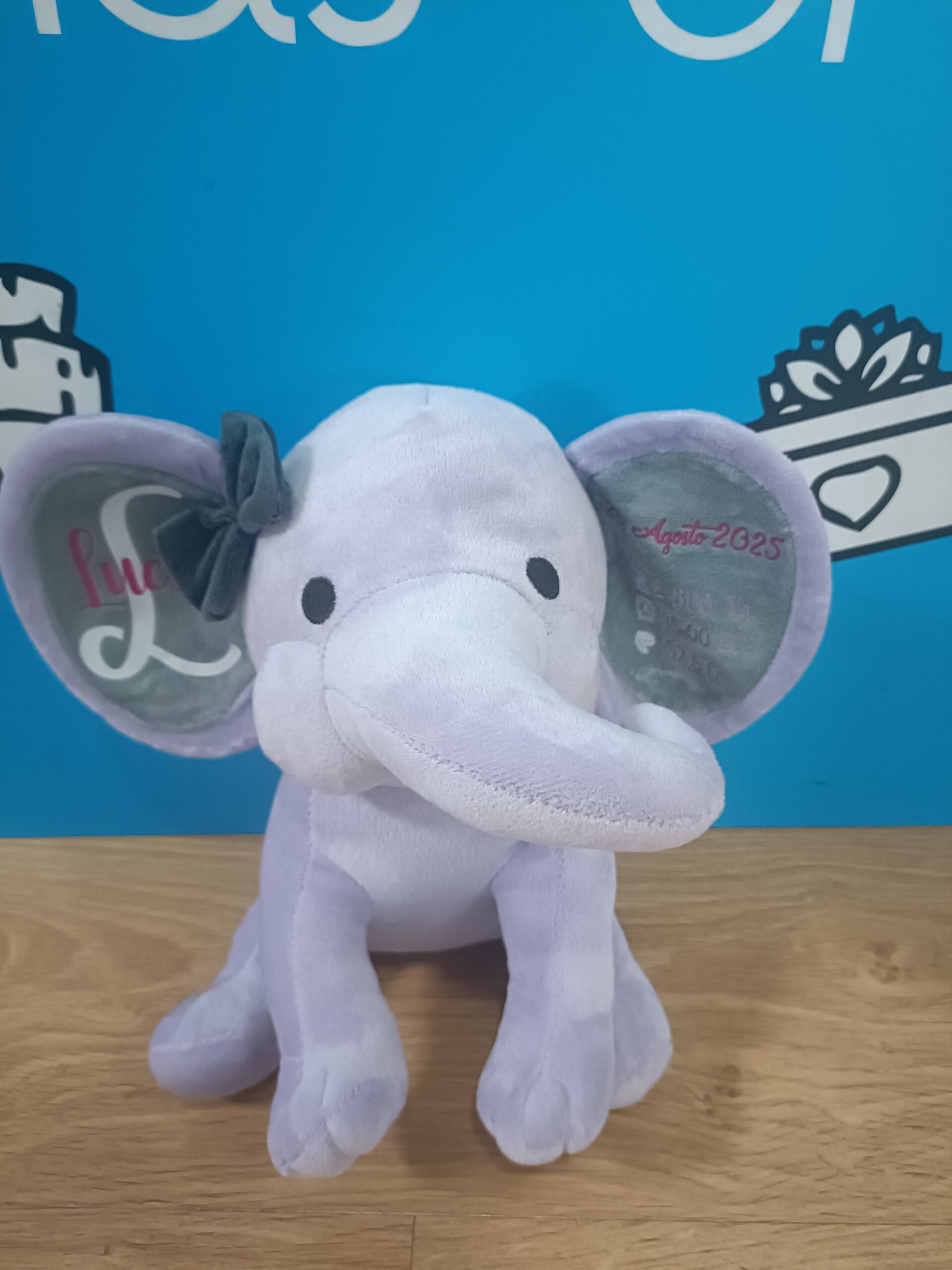 - Peluche de Elefante con los datos de Nacimiento