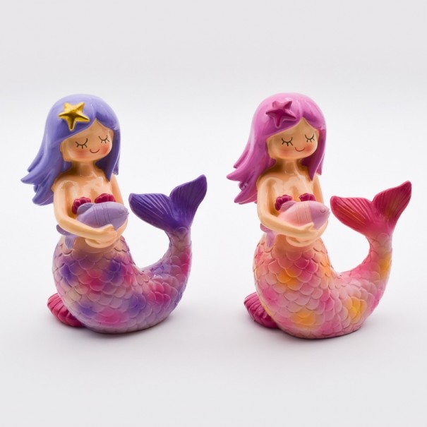 Hucha decorativa con forma de sirena. Figura de resina pintada a mano.