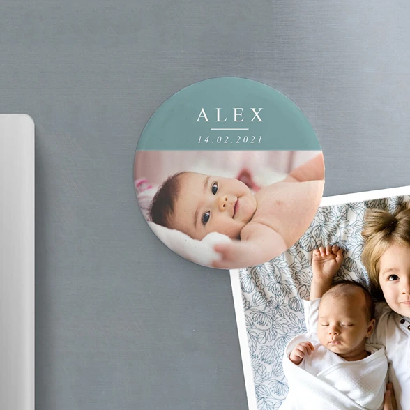 Al contrario que otros imanes, este tiene aspecto de chapa, pero en su parte trasera añade un imán para que puedas adherirlo a cualquier superficie metálica. Tiene forma redonda y puedes diseñarlo con tus fotos favoritas, un diseño o un texto. También ponemos a tu disposición diferentes plantillas prediseñadas que puedes adaptar a tu gusto y conseguir el modelo más original.