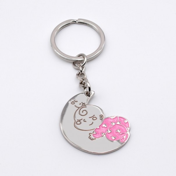 Llavero metal bebé rosa durmiendo en la luna.