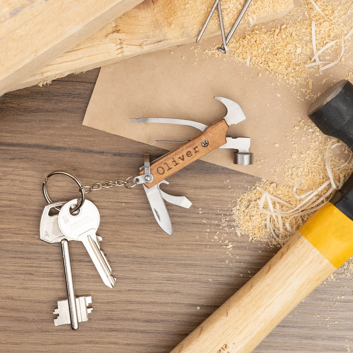 - Regalo para aficionados al bricolaje: Si tienes amigos o familiares que disfrutan trabajando con herramientas, este llavero multiherramienta será un regalo muy útil. Puedes personalizarlo con su nombre o una fotografía familiar o con amigos.