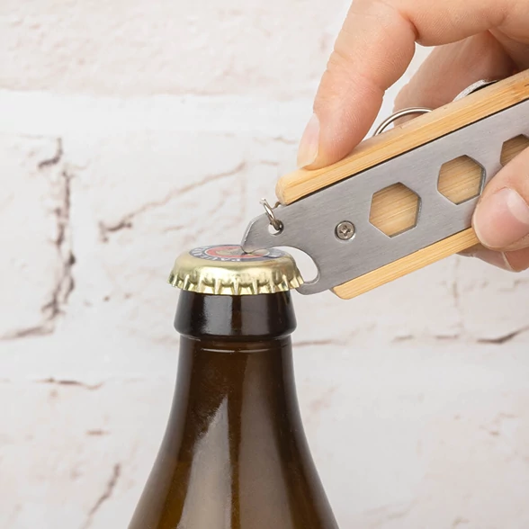- 5 funciones: conjunto de 4 llaves fijas hexagonales troqueladas y 1 abrebotellas.