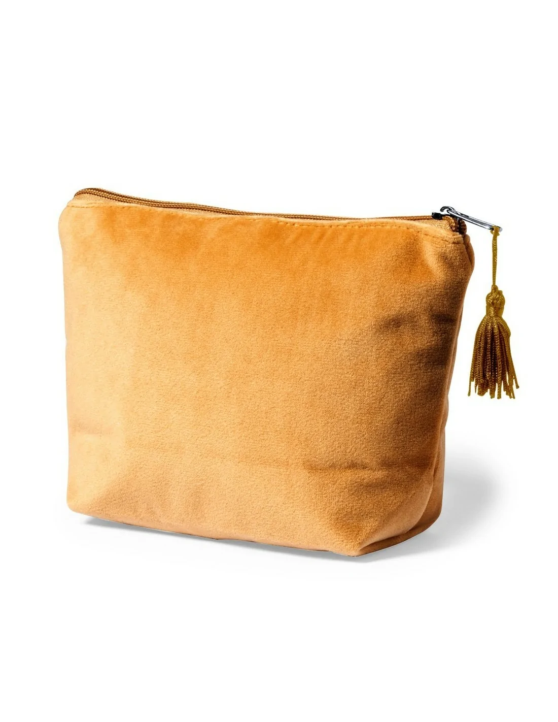 Neceser de tacto terciopelo, con cierre de cremallera y borla en tirador.