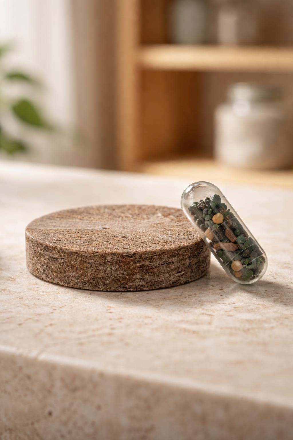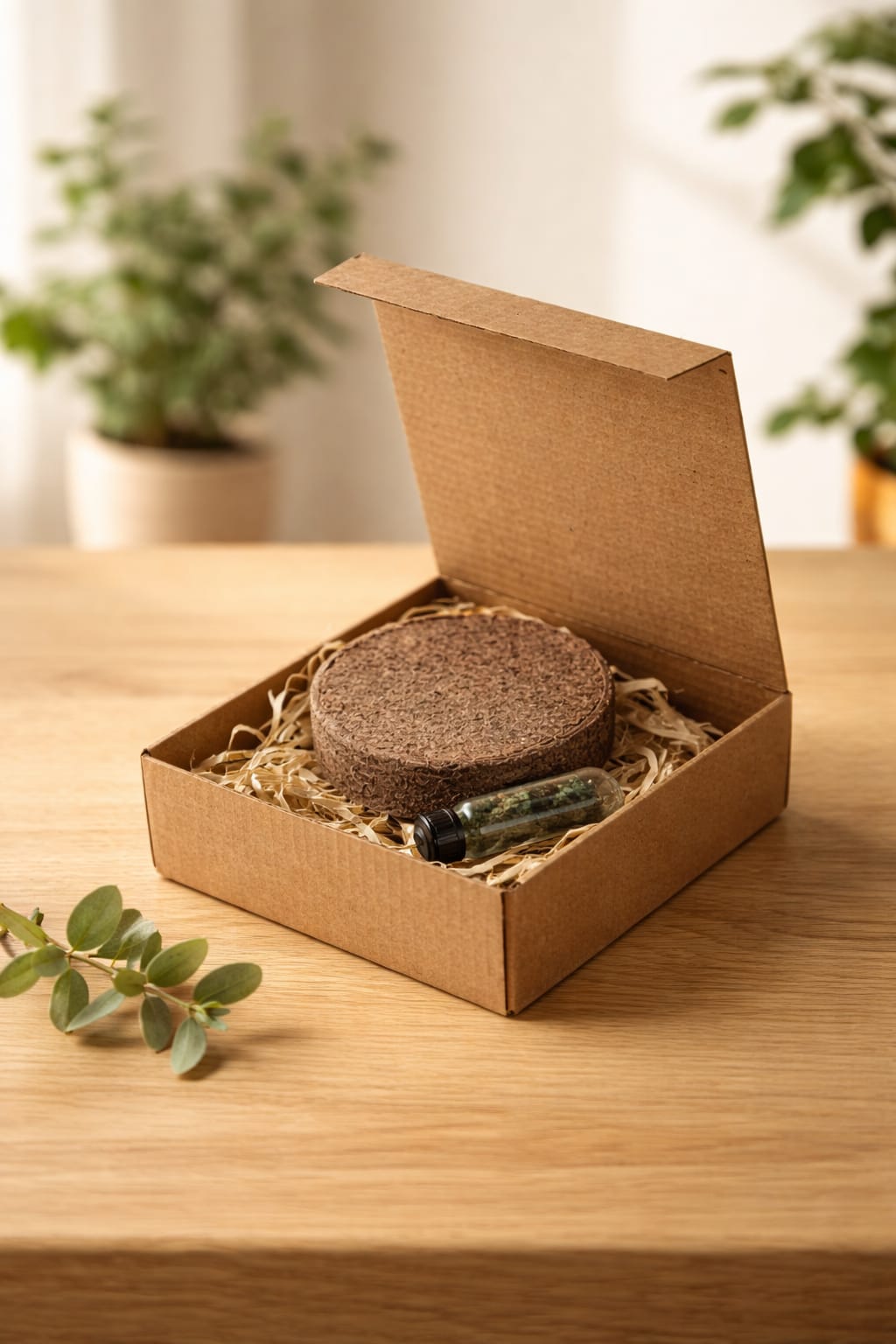 Pack plantable con cápsula de semillas y pastilla de sustrato, presentado en estuche de cartón reciclado con instrucciones de plantado.